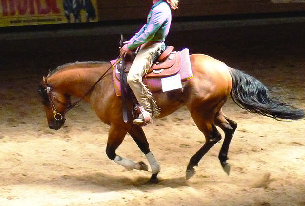 Sehen wir uns den idealen Westernreiter an: Anstatt zu versuchen, die Richter mit noch mehr Slack zu beeindrucken, als die Mitbewerber zeigen, steht sein Pferd am offensichtlich losen Zügel, ist aber immer „bei ihm“, so dass er es jederzeit beliebig und stufenlos regulieren und lenken kann, jederzeit den Rahmen des Pferdes erweitern oder verkürzen kann. Das Pferd hat die Hinterhand untergesetzt und ist so optimal manövrierfähig, ob in einem Trail, einer Reining oder einer Western Riding-Klasse. Seine Pluspunkte gegenüber den Konkurrenten holt es sich z. B. in einer Pleasure, weil es besonders taktrein und gleichmäßig läuft, besonders prompt und korrekt angaloppiert oder andere Transitions besonders glatt und weich ausführt, ohne sich in seiner Haltung zu verändern. Auch dadurch, dass es dem Richter von der Conformation her besonders gefällt, aber vor allem dadurch, dass es sich als der beste Beweger zeigt! In einer Reining besticht der ideale Reiter nicht nur mit der korrekten Ausführung der Manöver, sondern auch dadurch, dass er alles mit unsichtbaren Hilfen herausreitet, keine auffälligen Bewegungen mit der Zügelhand oder gar den Armen und auch nicht mit den Beinen macht, tadellos gerade in der Mitte des Pferdes sitzt, ohne steif zu wirken. Sein Pferd macht keine unkontrollierten Bewegungen im Stand, beim Angaloppieren oder vor dem Andrehen bei den Spins, und es läuft genau da her, wo es herlaufen soll. Seine Zirkel gehen wie auf Schienen immer über X, und es bleibt auch auf den großen schnellen immer weit genug von der Bande entfernt, so dass der Reiter auf diese Weise demonstriert, dass er das Pferd lenkt und nicht die Wand oder die Bande. Wenn er die Bahn betritt und nach X geht oder wo sonst er angaloppieren muss, bleibt er ruhig sitzen, seine Zügelhand macht keinerleit auffällige Bewegungen, auch nicht beim Angaloppieren, sondern er treibt sein Pferd unmerklich in die Bridle, formt es und dann geht es wie selbstverständlich in den Galopp. Zuletzt habe ich Grischa Ludwig auf der Americana so angaloppieren gesehen, während alle anderen einen Zupfwettbewerb zu machen schienen. Auch während der Galoppzirkel bleibt die Zügelhand idealerweise still und durch die ganze Prüfung hindurch.